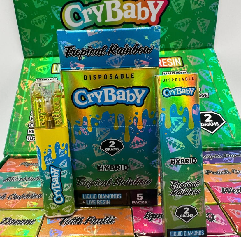 Crybaby Disposables Liquid Diamond + Live Resin Disposable Vape Carts** come in a generous 2-gram (2000mg) size, offering a high-quality vaping experience that has to be tried to be believed. These vape carts feature a potent and flavorful concentrate that is meticulously handcrafted from the finest fresh-frozen flower.